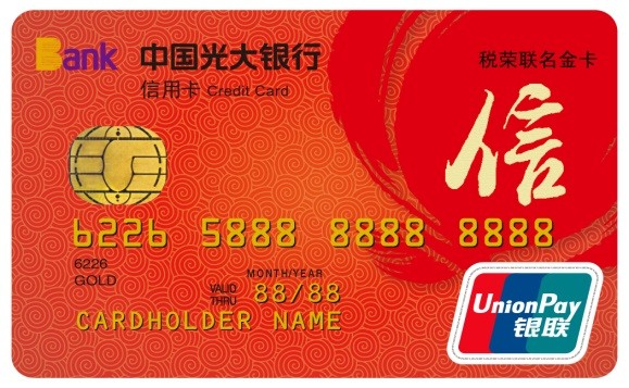 “税荣联名信用卡”以书法字体“信”为主背景,配以鼎或刀币的图案,寓意“诚信为本纳税荣光”,分 为金卡、白金卡、智能商务卡等,可以为不同纳税信用等级的纳税人提供3-50万元不等的信用额度,且消费积分礼品及特约商户打折力度都要比一般信用卡要高 。